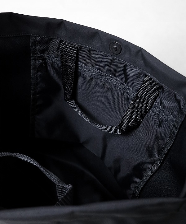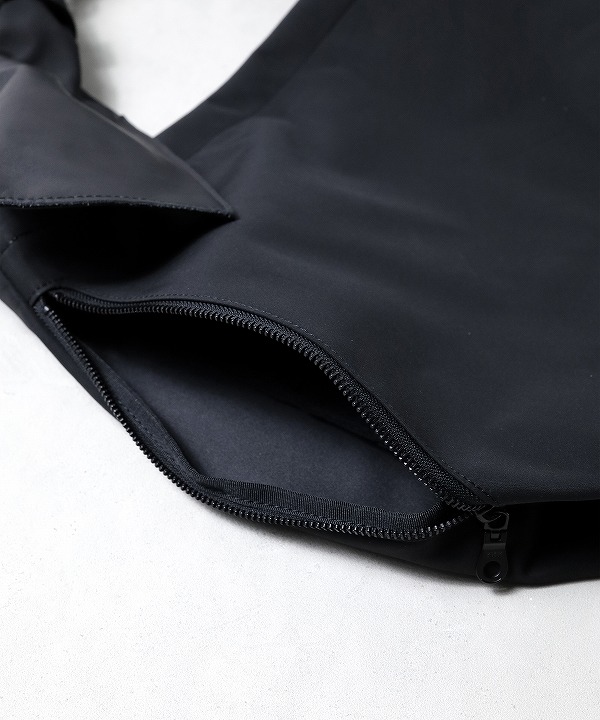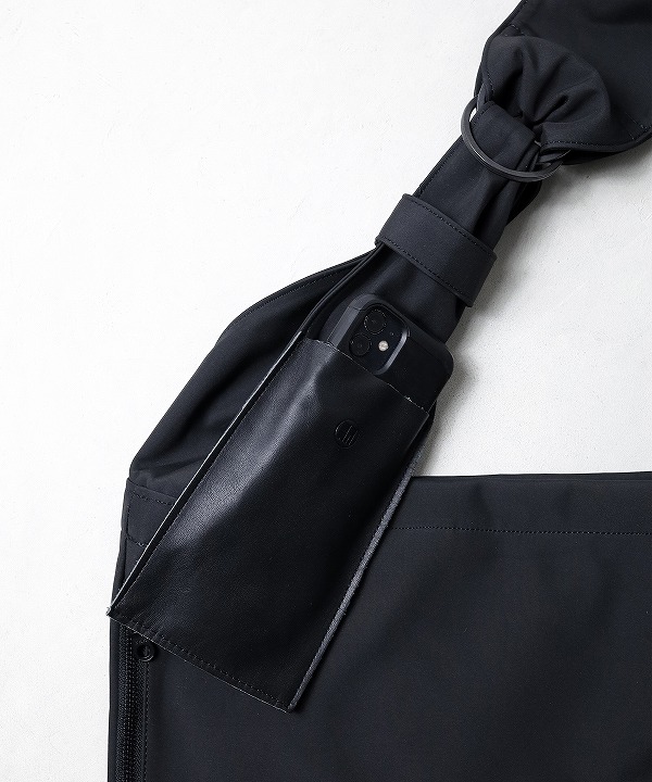 ショルダー幅が110mmと通常のバッグよりも太めの規格になっており、剣先にはスマホ等を収納できるポケットが付属されています。内装には持ち手も装備されており、トート型としても使用可能です。