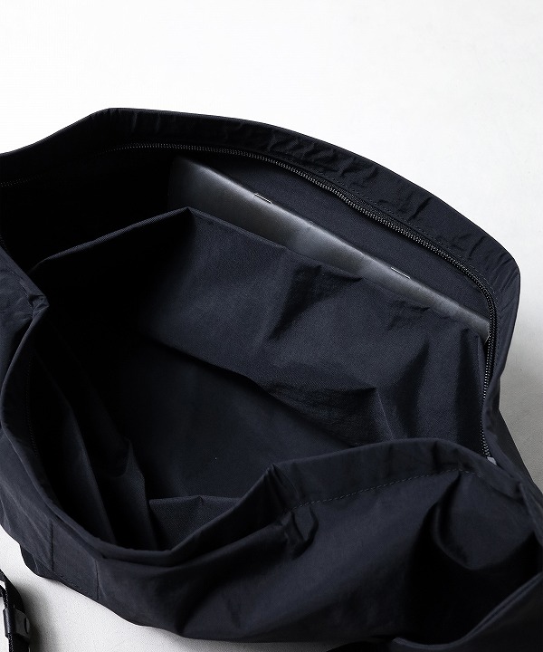 柔らかく、しなやかなコットンライクなナイロンとバッグの仕様と合わさってドレープ感を作り出します。