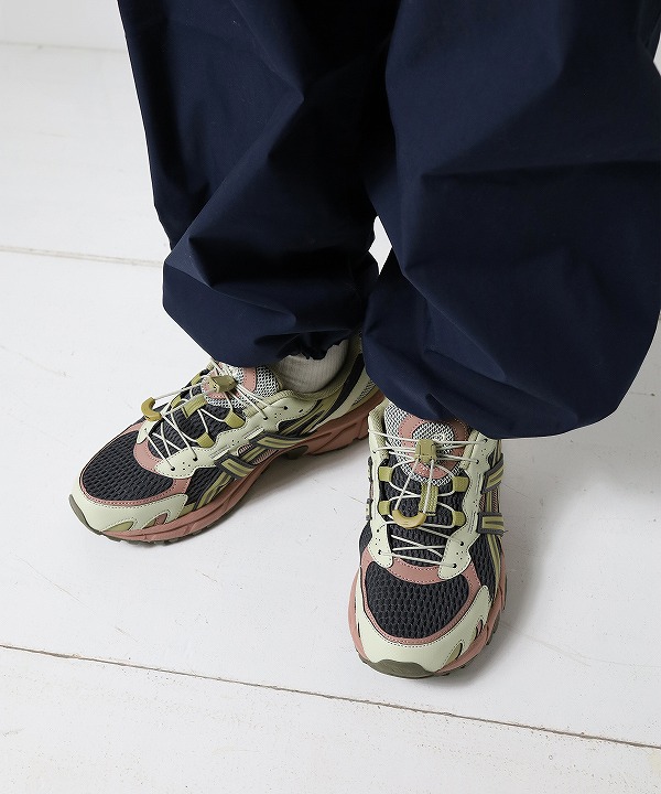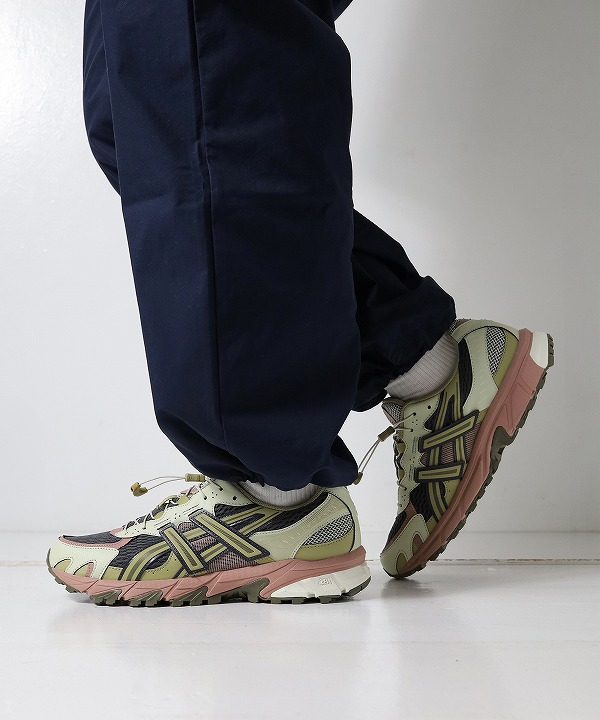 ベースとなったモデルたちはもともと競技用のトレイルランナーのために作られたものですが、今回のモデルは日常使いのために改良されています。 ソールはGEL-SONOMAシリーズ2代目までの構造を使用しており、日常使いなどのさまざまな環境で高度なクッション性とグリップ性を生み出します。