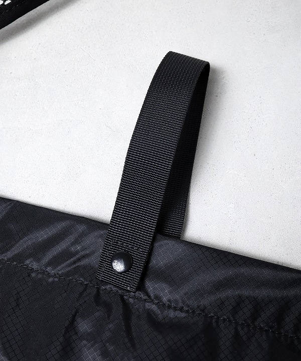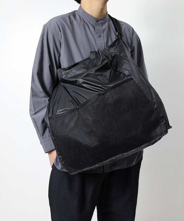 軽量で撥水性にも優れたシリコンコーティングされたコーデュラ社のシルナイロンとメッシュ素材で構成されたショルダーバック。