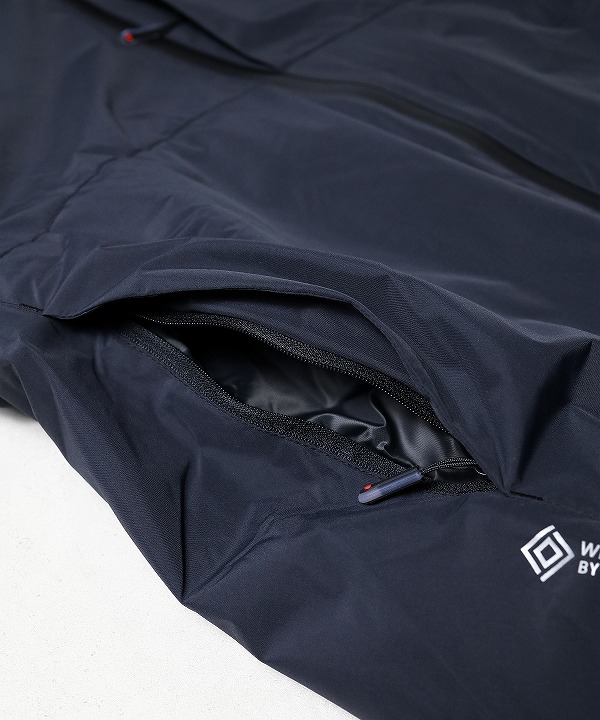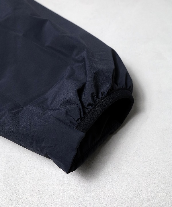 ジャケットの表地はGORE-TEX Windstopperを採用。しかし、製品の「より暖かく、より軽く、より手軽に」というコンセプトから、縫製部裏にあえてシームテープを貼っていません。ですので、製品自体はGORE-TEX基準での防水レベルには達してませんので、『GORE-TEX Windstopper™ 』という表記をしておりません。