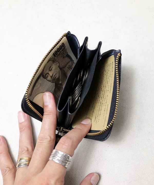 お札は二つ折りですとぎりぎりサイズになりますので、三つ折りの方が自然に収納いただけます。