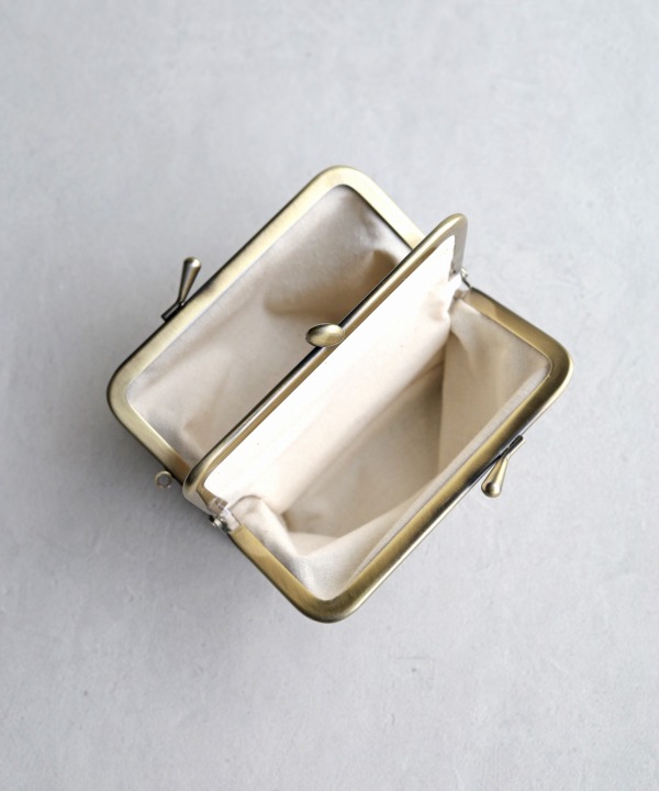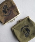 ミリタリーファブリックを使用しがま口ウォレット。紙幣が二つ折りで入るサイズでコインと分けて収納いただける2室仕様。