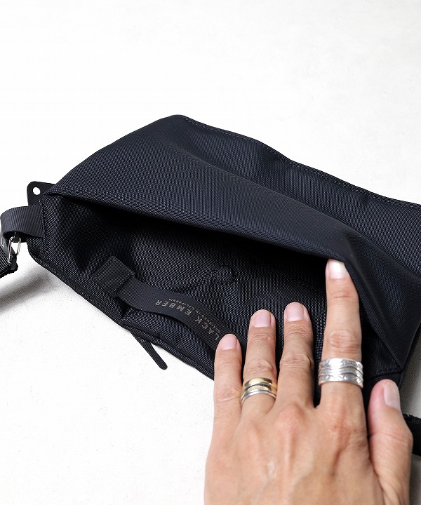 シンプルでミニマルなフラットパックで、携帯電話、財布、鍵などの必需品のために作られたバックです。ジャケットの中でも外でも着用できるようにデザインされています。外付けのポケットはマグネットで簡単開閉できすぐ取り出したいスマホなど入れるのに便利です。