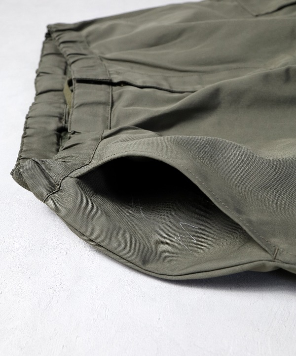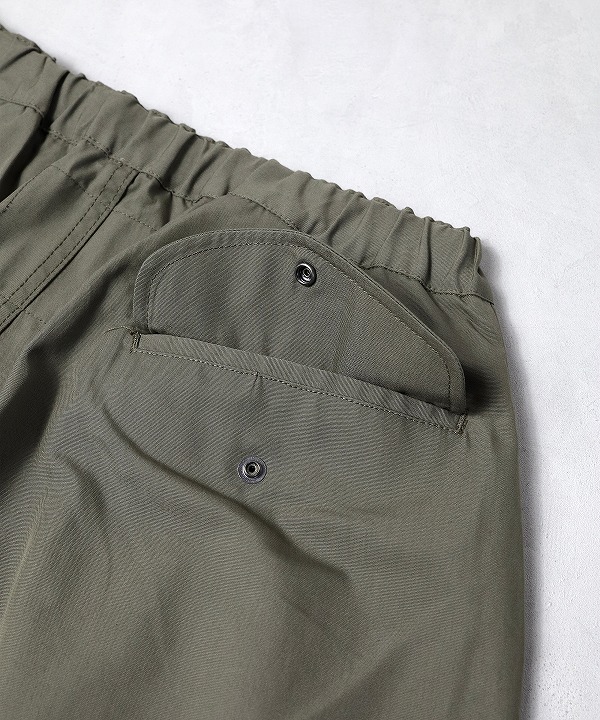 ウェストはドローコードで調整可能、フロントはジップフライ仕様でサイドポケット付きです。