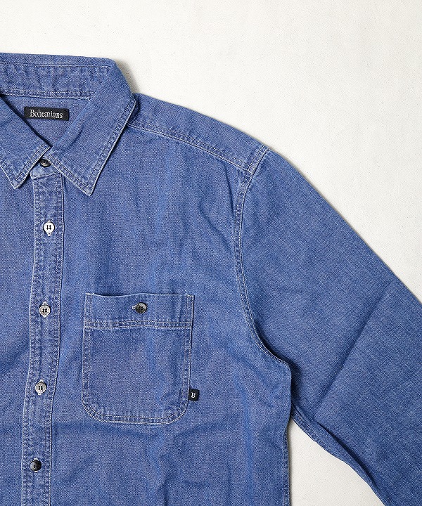 コットン/ヘンプ混合のオリジナルデニムシャツ