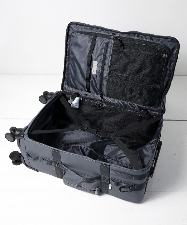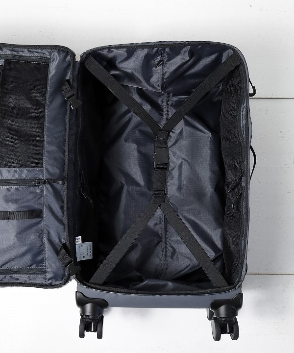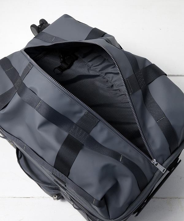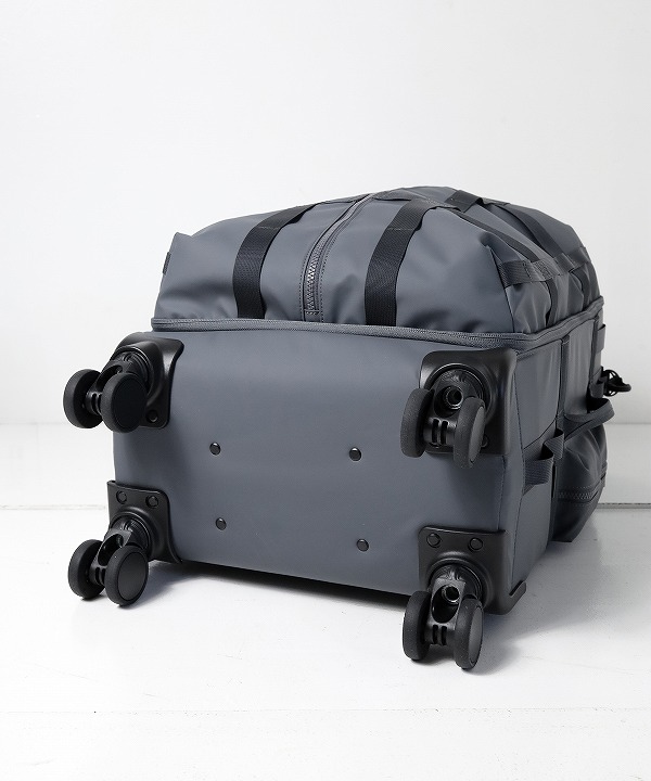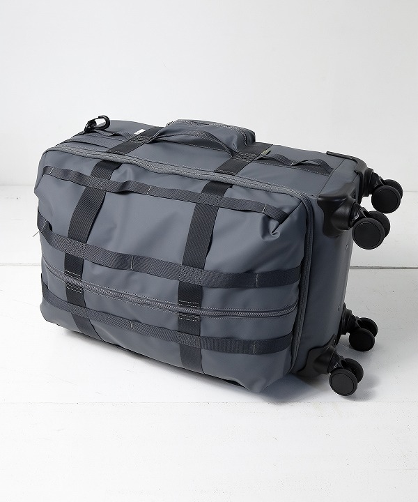 「SOFT TROLLEY」はGRID3の特徴である格子状のナイロンテープを全体に配し、様々なアイテムをアタッチメント可能な4ウィールのトロリーバッグとなります。