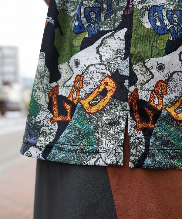 スポーツウェアで多用される昇華転写プリントによるデザインの可能性を最大限に活かすべく、緻密で色鮮やかなグラフィックを表現したオリジナルテキスタイルを使用したランニングシャツです。