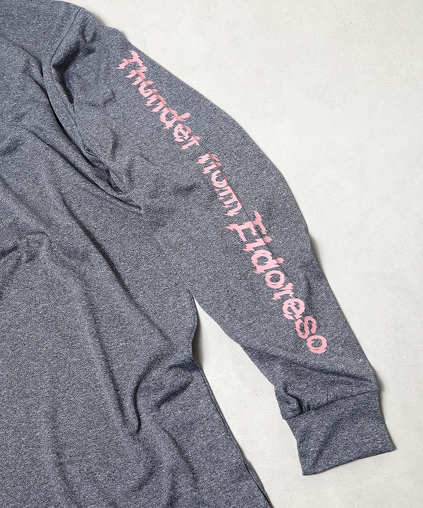 両サイドの裾にスリットを入れたエルドレッソ定番のボックスシルエットのロンTの背中にアイコニックなモチーフをプリント。