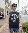 クラシックなヴィンテージのフィニッシャーTシャツから着想を得たグラフィックをプリントした、ノースリーブタイプのランニングシャツです。