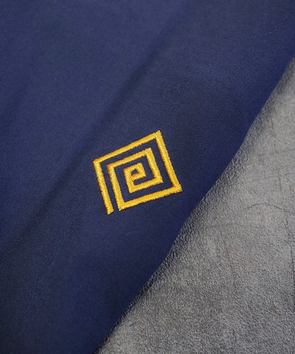 裾のカラージップと、ワンポイントのブランドロゴの刺繍をアクセントに仕上げました。