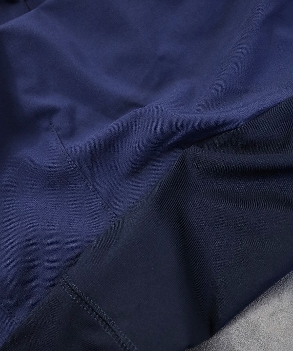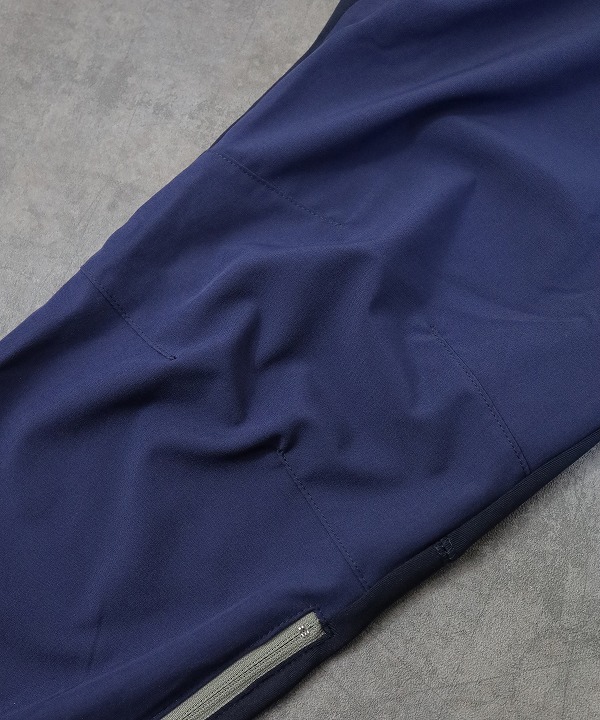 前後で異なる機能性ファブリックは、イカンガーパンツに比べてライトオンスのストレッチ生地をセレクト。