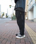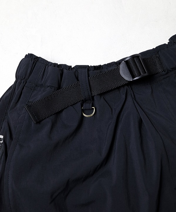 ゴム入りのウエストにはアウトドアウェアから着想を得たウェビングベルトを搭載しており、片手での着脱が簡単な仕様に。
