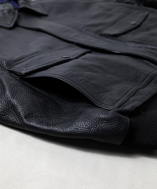 肉厚の牛革を使用し、クリーンでプレミアムな印象のA-2レザージャケットです。