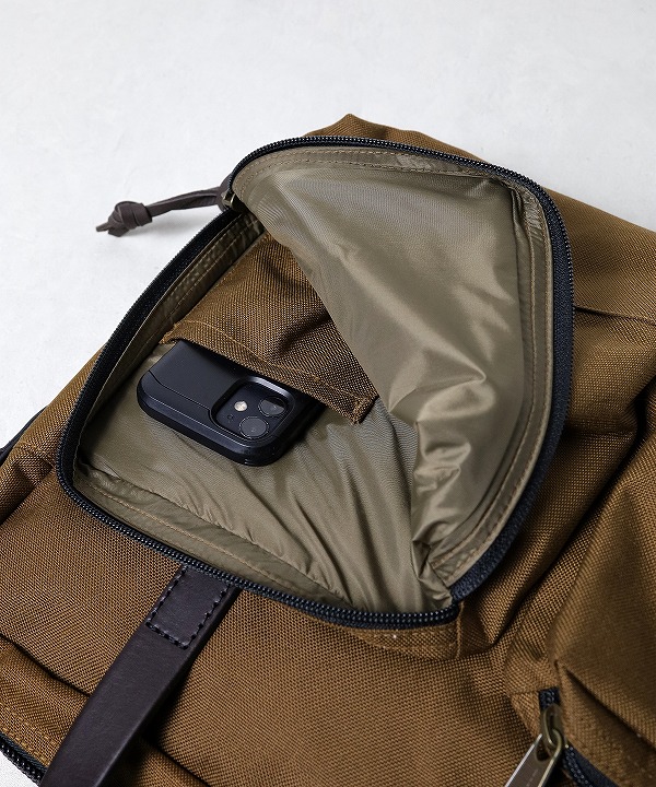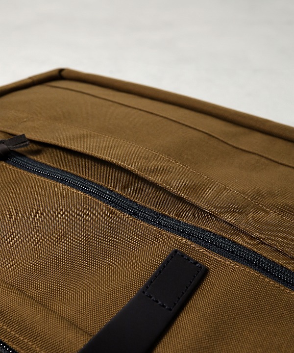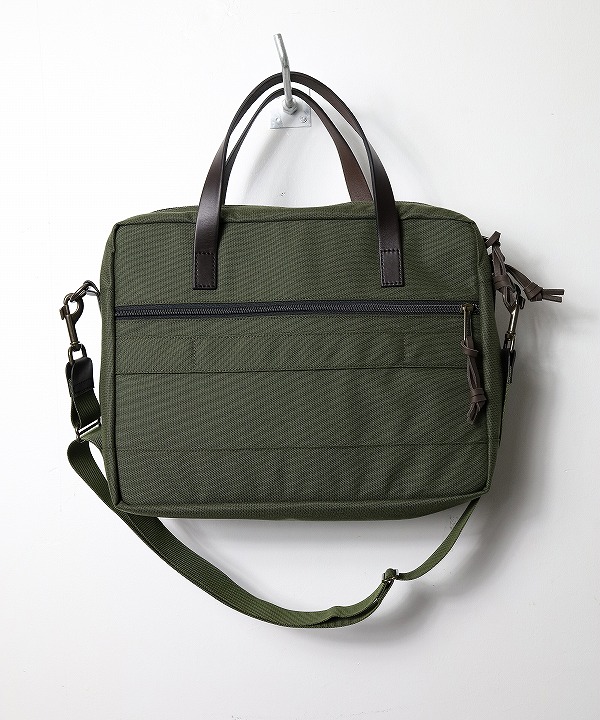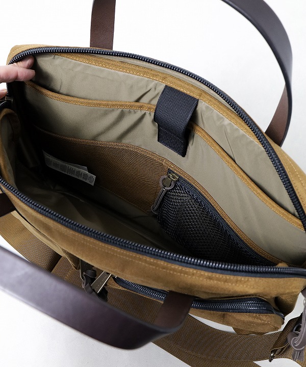 従来のフィルソンのバックのイメージである「タフではあるが若干重く、長時間は疲れる。」といった弱点を克服するため、本体、アウトポケットなどに軽量な1000D nylonを採用しています。ハンドルやジッパーにブライドルレザーを使用することで、従来の重厚なフィルソンの魅力も十分に感じられるブリーフケースに仕上がっています。本体、ポケットのライニングもナイロンを使用しているのでラップトップも安心です。