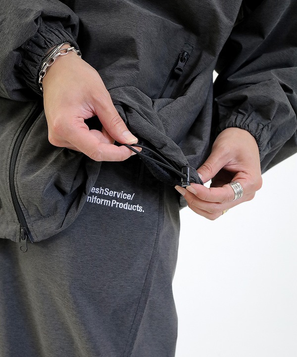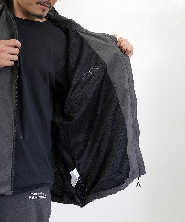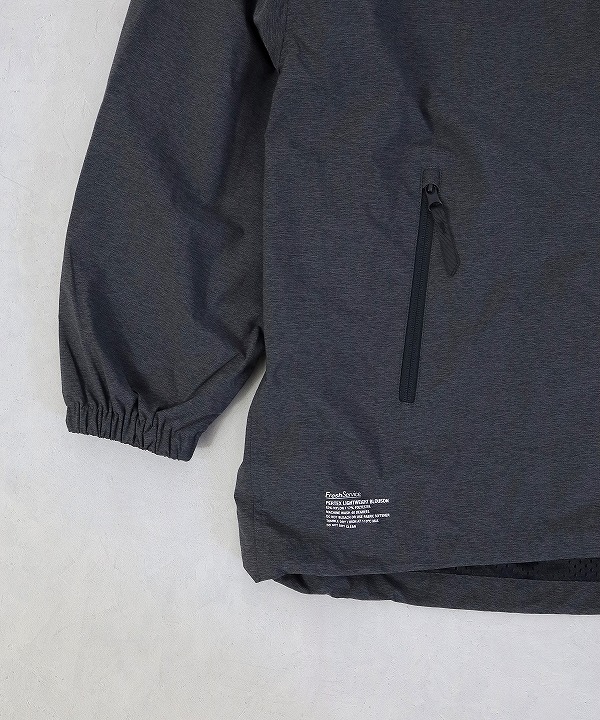 非常に薄く、軽量なPERTEX® EQUILIBRIUMに別注した、FreshServiceのスペシャルなブルゾンです。 抜群の速乾性と透湿性に加えて撥水加工も施した素材は、肌への張り付きも抑える効果もあり、高温多湿の環境下においても快適な衣類内環境を保ちます。 裾にはドローコードを配置。シルエットの調整が可能で、都市生活はもちろん、アウトドアシーンでも活躍するアイテムです。
