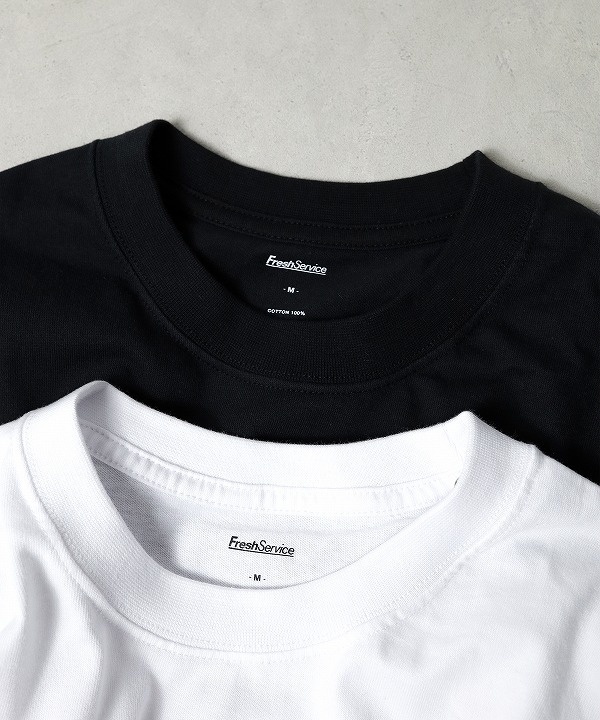 ボディはFreshServiceの定番のボディーを使用。ドライでざっくりした風合いのコットン生地で、脇に縫い目のない丸胴仕様。