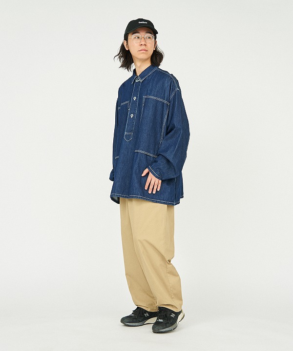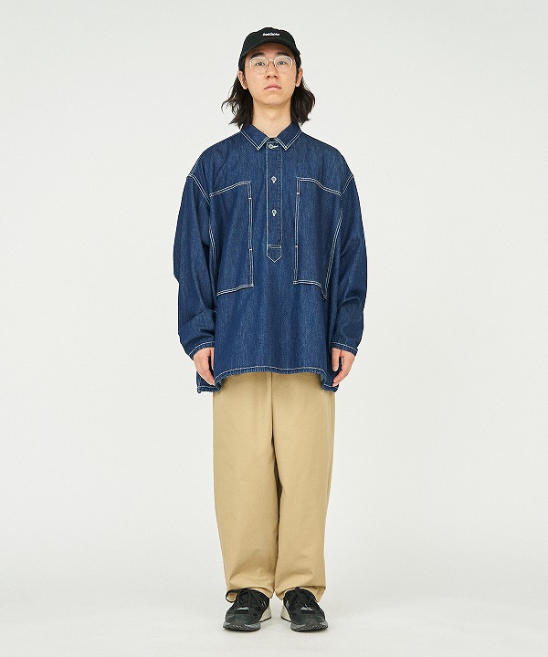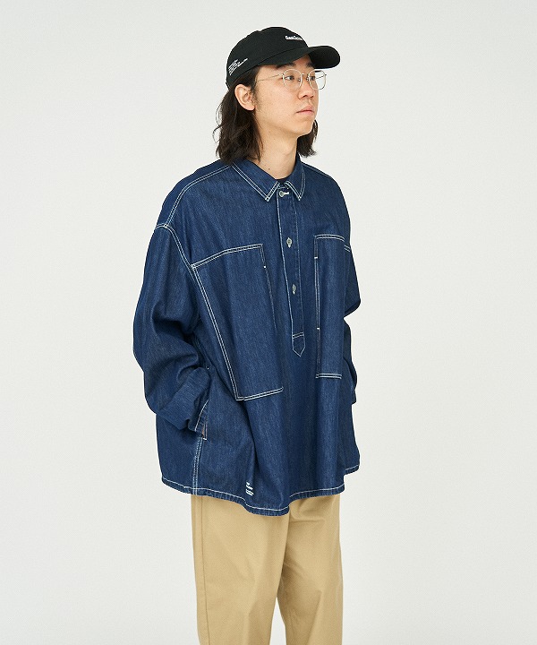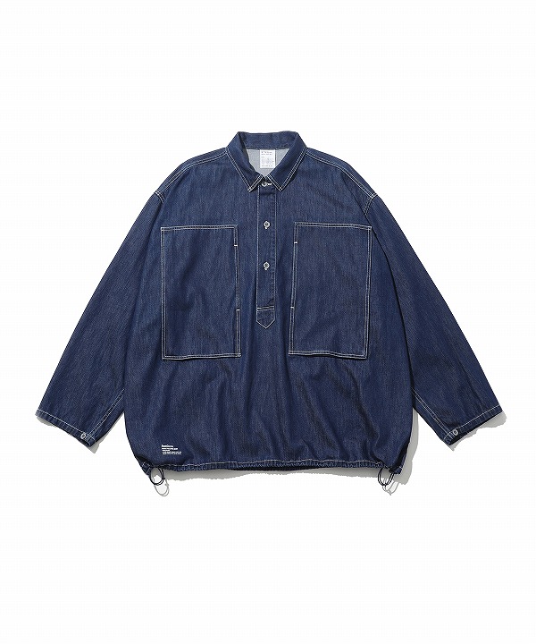 ミリタリーウエアのオリジナルを尊重しつつFreshServiceのフィルターを通してアップデートしたプルオーバーデニムシャツ。