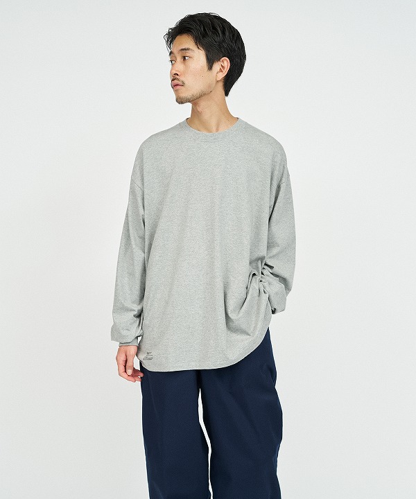 脇に縫い目の無い丸胴仕様も健在で、肩が落ちていてリラックス感のあるオーバーサイズフィットは健在ながらも、従来よりもスマートなシルエットにバランスを調整しております。S、M、Lの3サイズ展開で幅広い体型の方にハマるアイテムになっております。