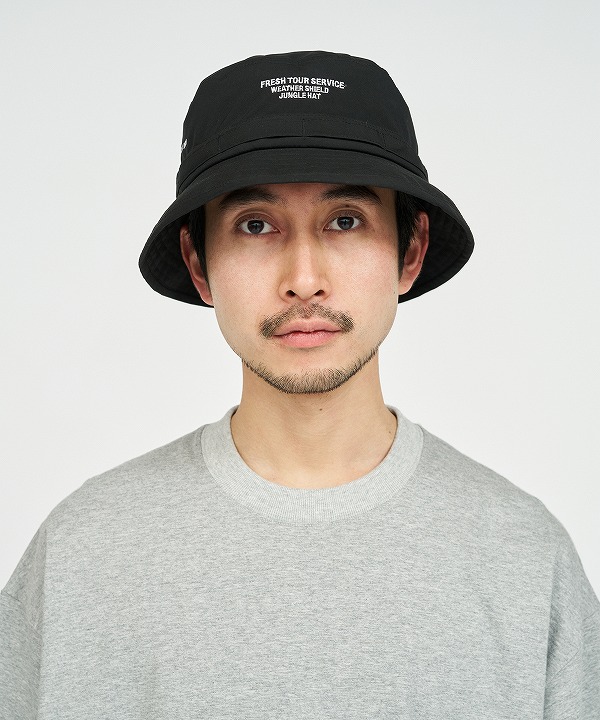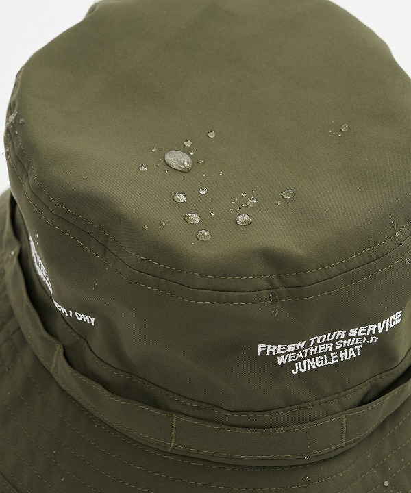 軽量で撥水性・透湿性に優れたオリジナル3レイヤーファブリックを採用したジャングルハット。