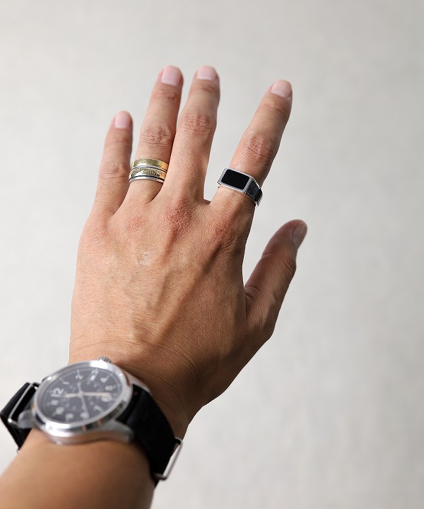 オニキスが鈍く輝く印台リング