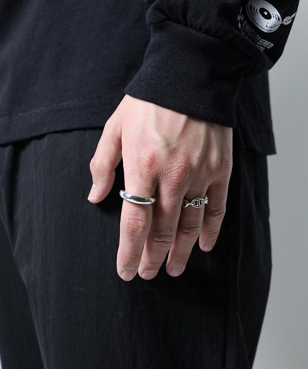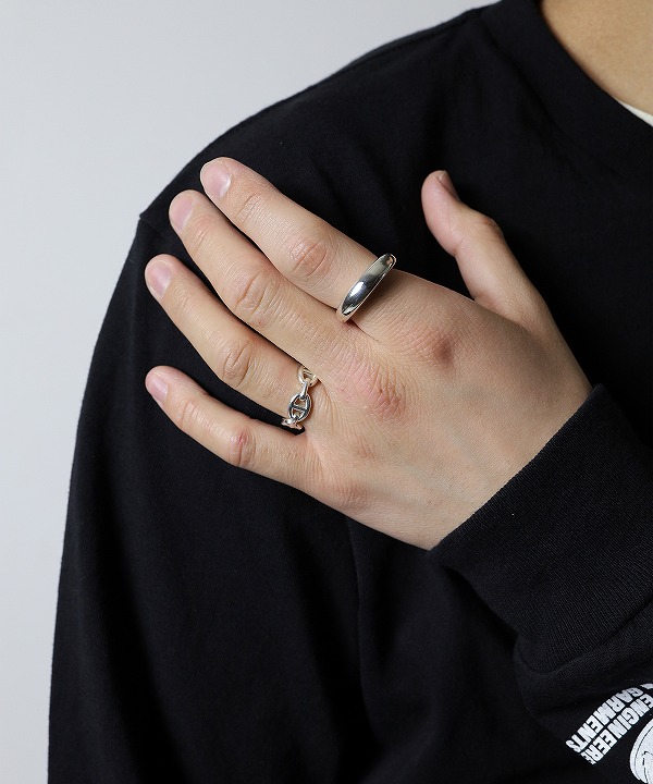 シルバー925素材を使用したリングです。 カーブを描いた曲線が光をやわらかく反射し、程よいボリューム感が指元に存在感をプラスします。 ミニマルなデザインですので幅広いスタイリングに自然に溶け込みます。