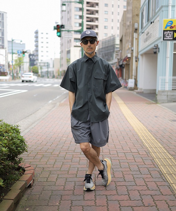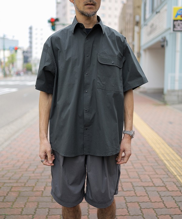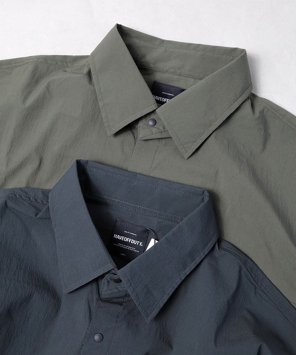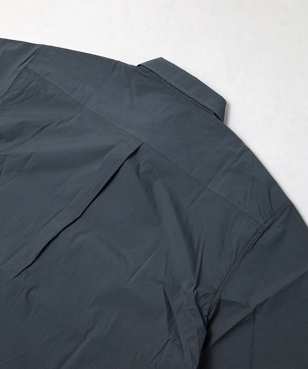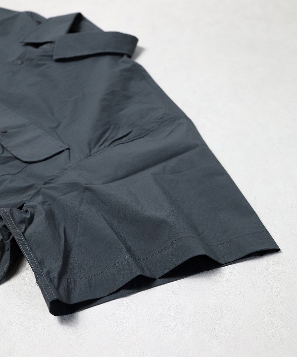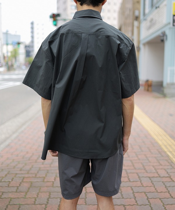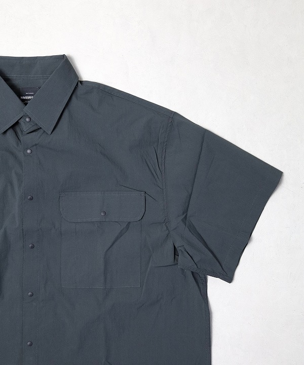 ペーパー質感の高密度N/C生地で作られた半袖シャツです。