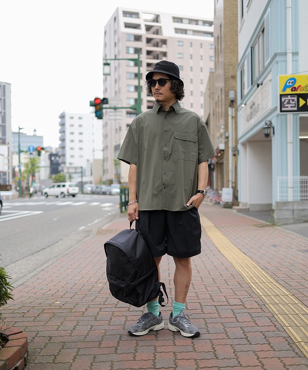 速乾性に優れたハリのある生地感で、その身軽さとタフさが魅力の高機能素材です。製品洗いを施しておりますので自然な雰囲気で着用いただけます。