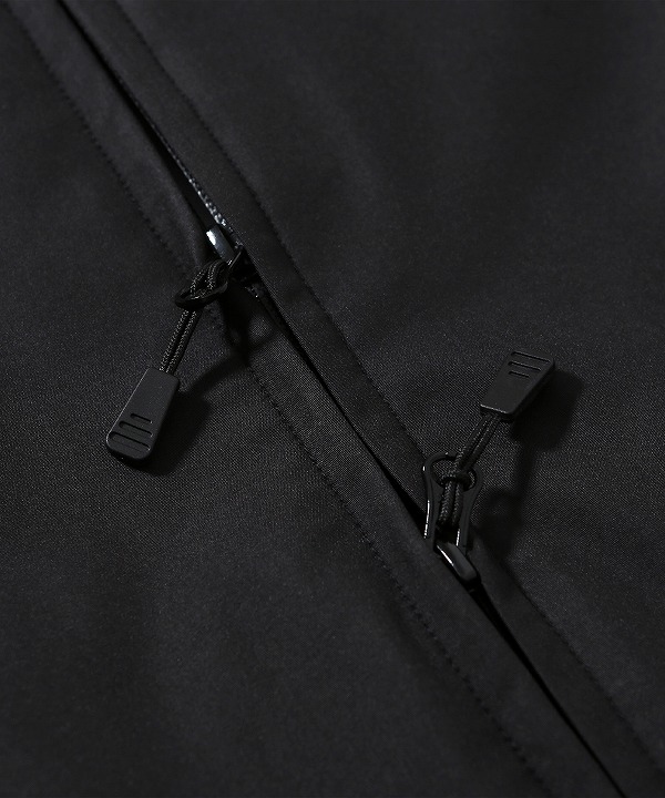 ・前面にあるYKK防水ジッパー仕様、2wayで調節可能