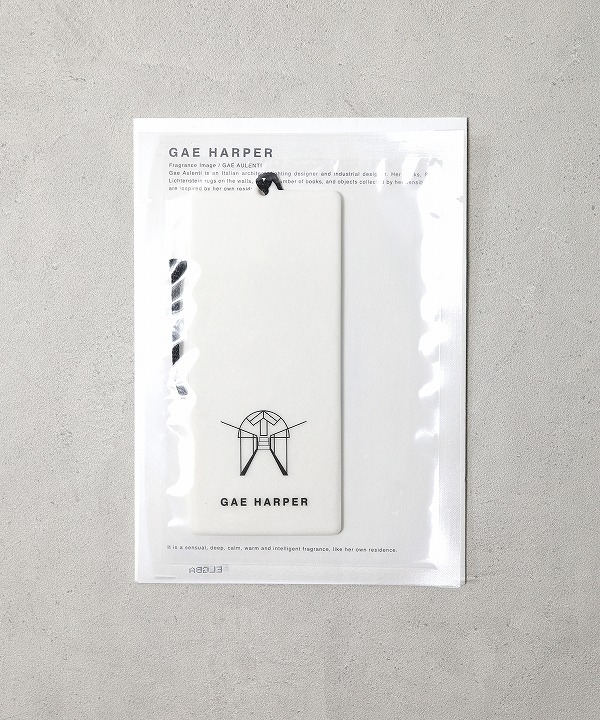 イタリアの建築家・照明デザイナー・インダストリアルデザイナーのガエ・アウレンティ。 ガエの作品や壁にロイ・リキテンステインのラグ、大量の本、感性で集められたモノたちの自邸をイメージした香りのペーパーフレッシュナー。