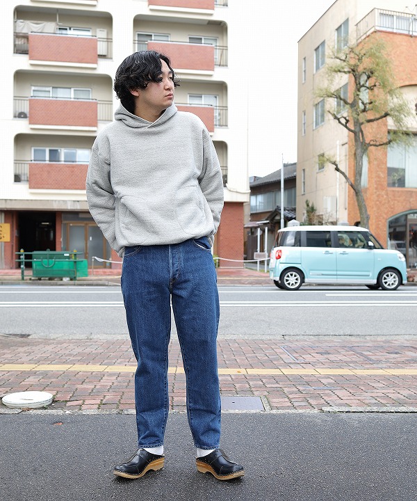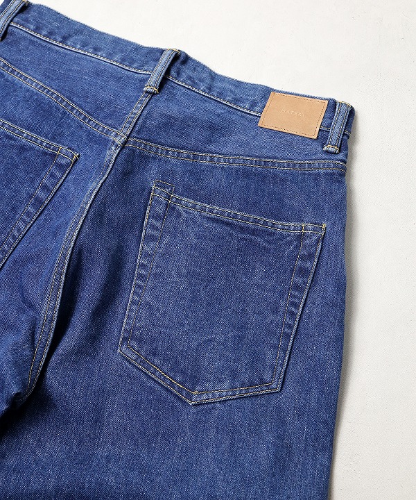股上を深めの設定にし、ヒップ回りはやや余裕をもたせ、わたりから強めのテーパードがかかった、ゆったりとした綺麗なラインが魅力です。