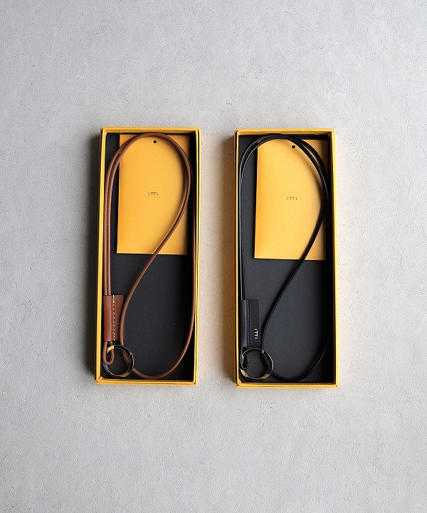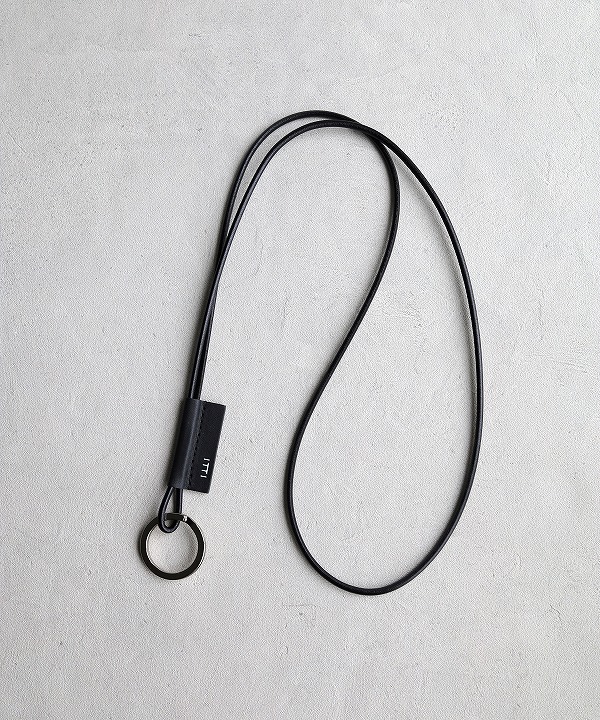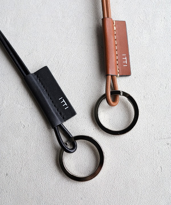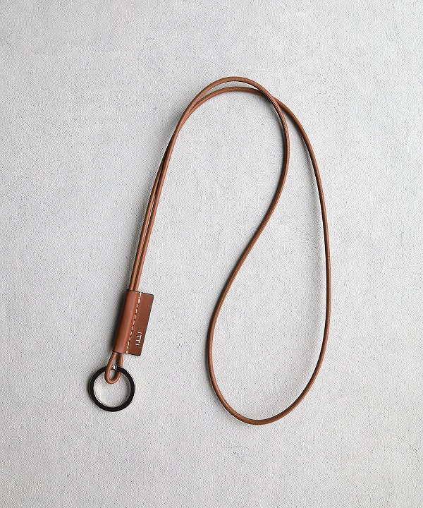 鍵などつけることのできるリングがついた、シンプルなレザーストラップ。