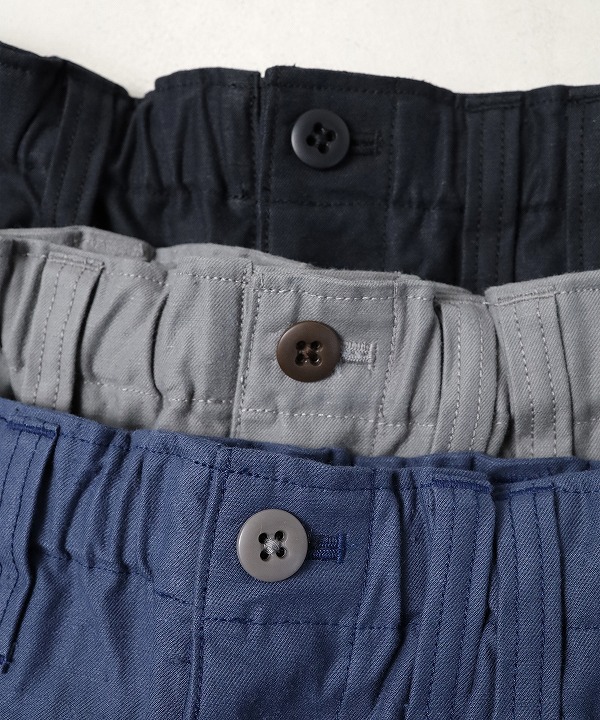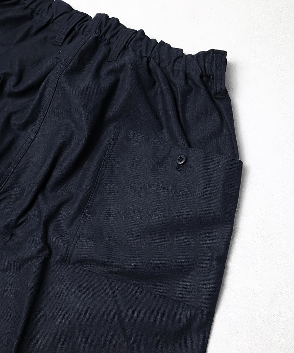 デザインはクラシカルなBaseballユニフォームのパンツ仕様をベースにベルトループ付き前開き仕様で大ぶりのポケットを配したアンプス型にしました。