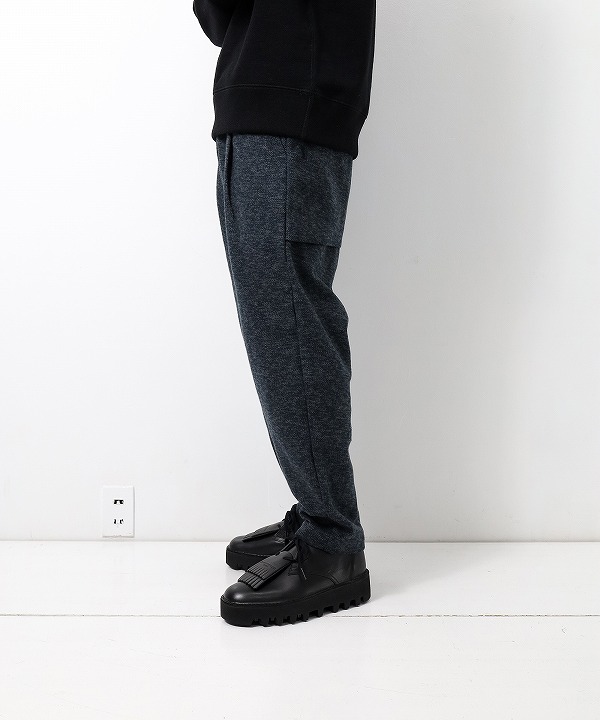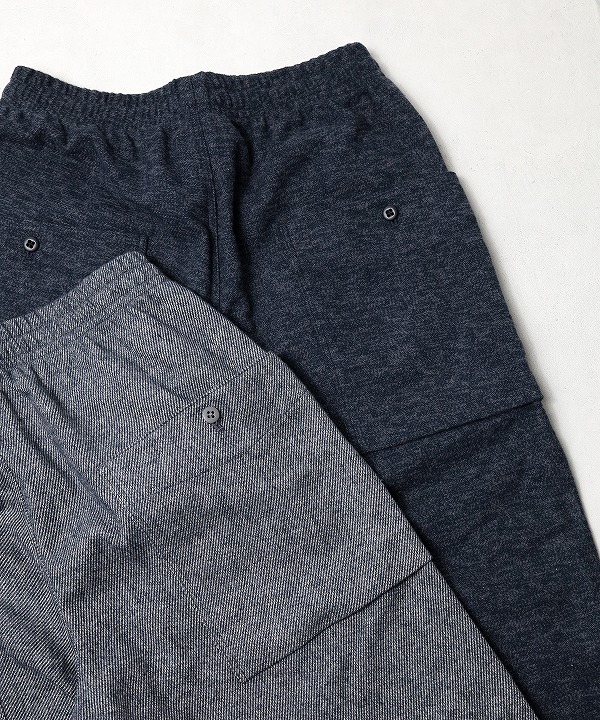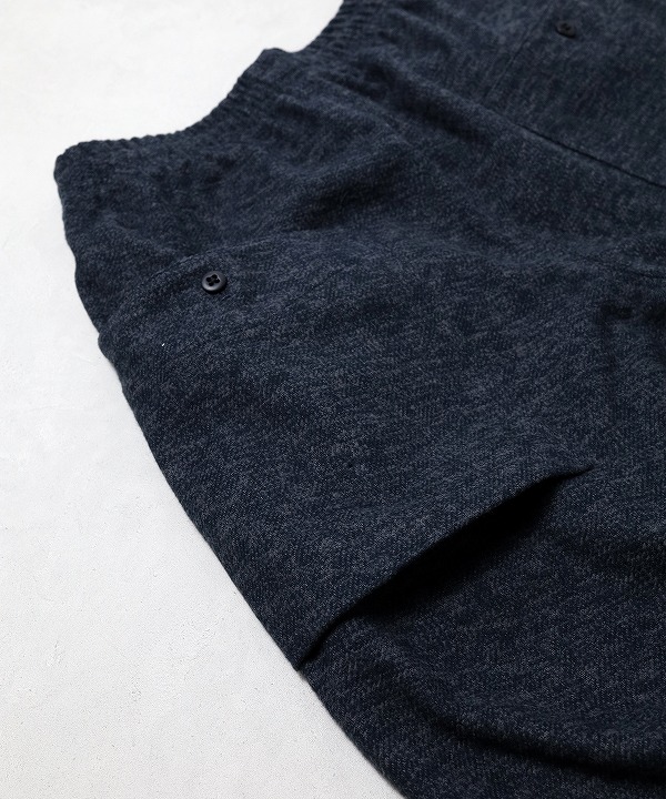 綿100%の3色の糸を撚りツィード織りした素材を使用したアンプスパンツです。