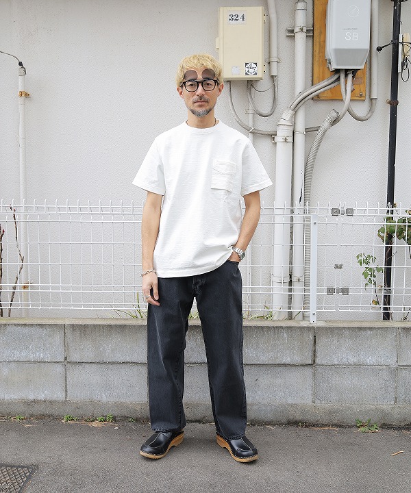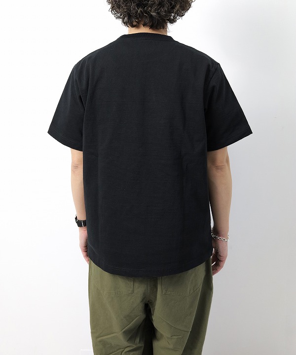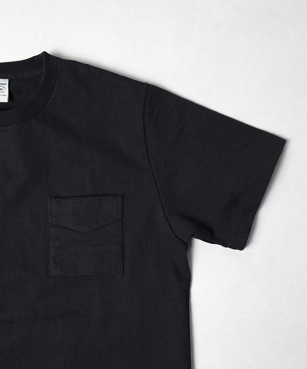 アメリカ産のコットンを使用して吊り編み機で限界まで度目を詰めて編み立てた約11.5オンスの極厚素材「ドツメ天竺」を使用した半袖ポケットTシャツです。