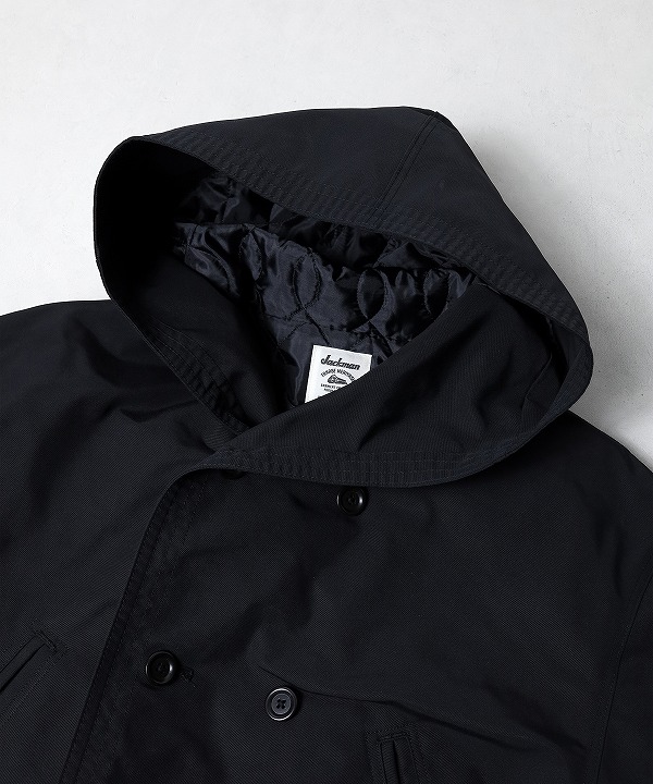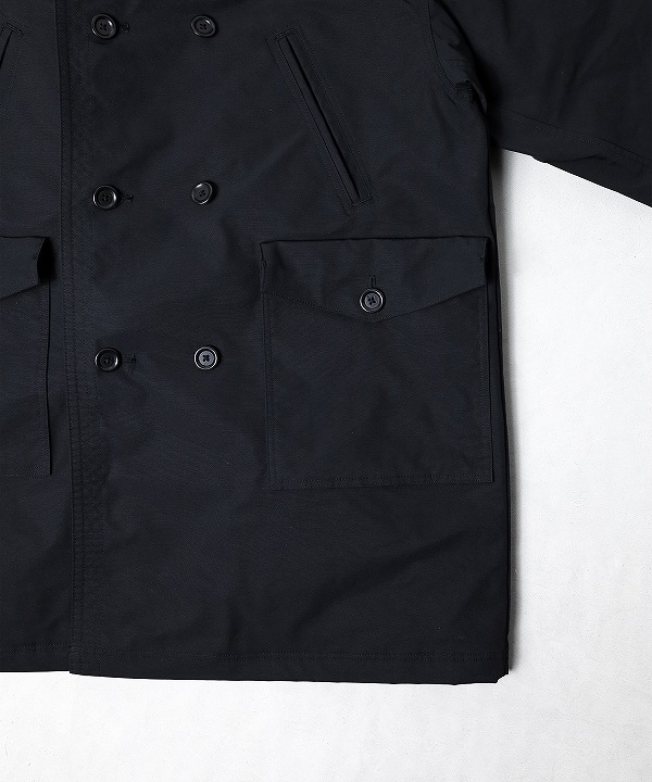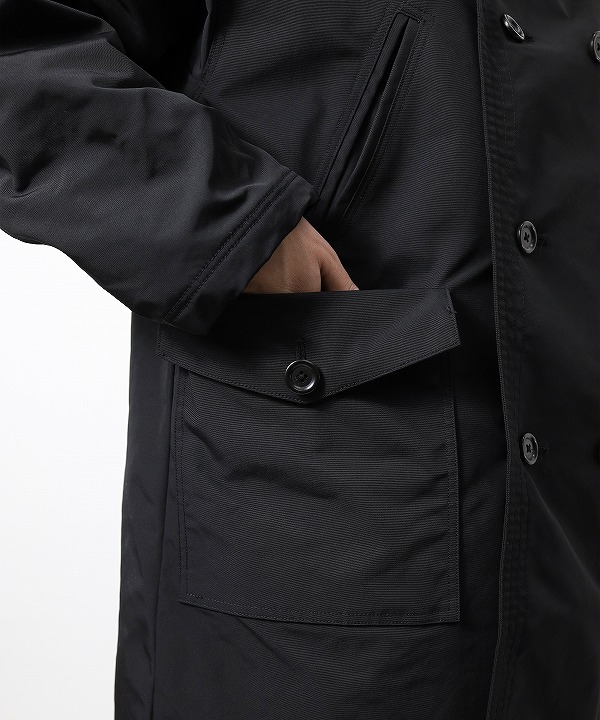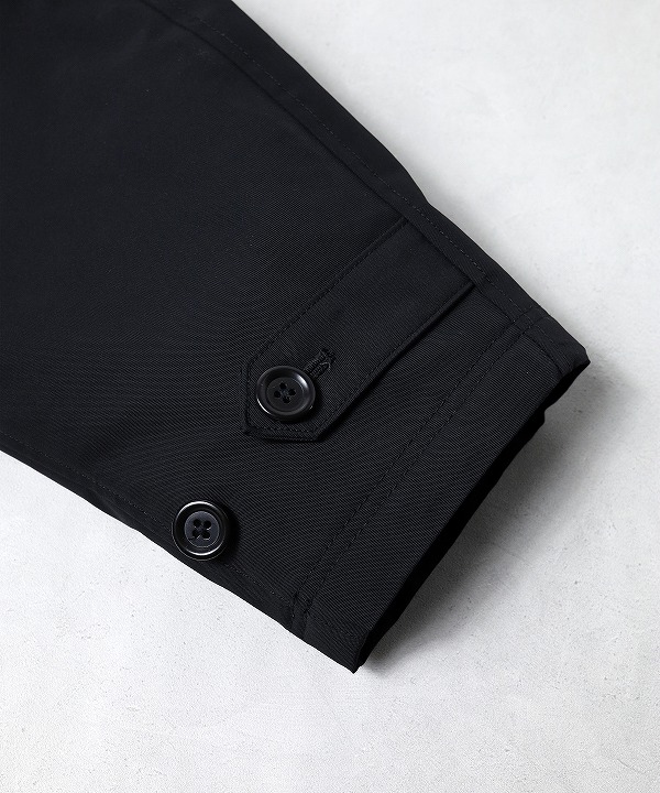 ポリエステルフィラメント糸で織り上げたオックスフォード織りの布帛素材を使用したスペクテーターコートです。
