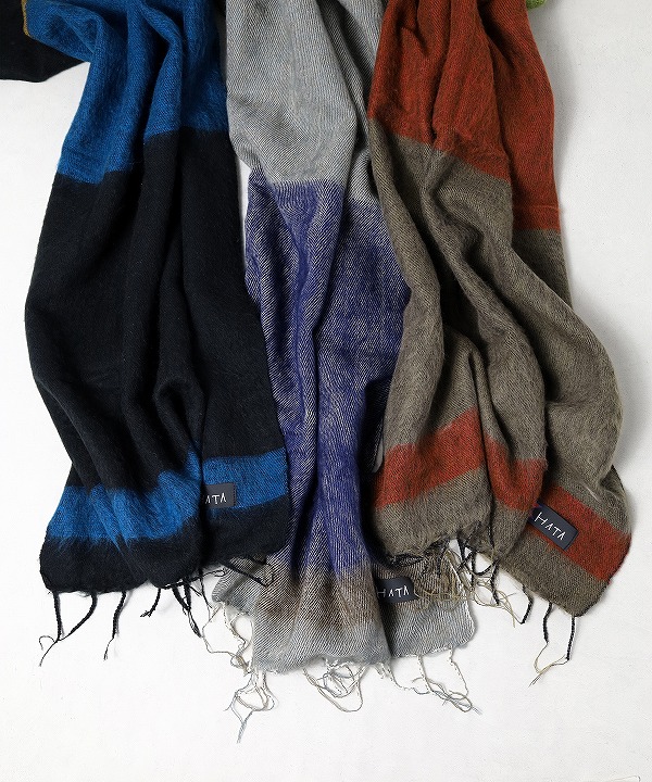 KHATAは、チベット語で“スカーフ”という意味をする単語で、ネパールの伝統的な技法で手染めや手織りされたストールは、肌触りがよく、色鮮やかな色合いも魅力となっています。