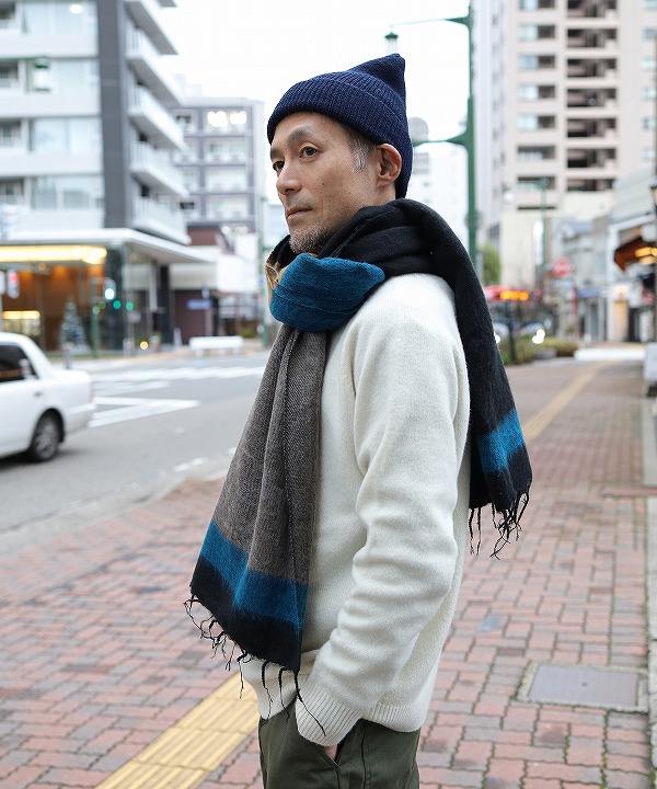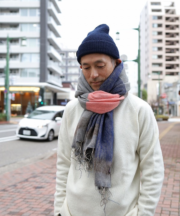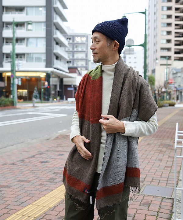 大判なのでニットやアウターの上から羽織ったり、首元に一巻きしてボリューム感を出したり、ひざ掛けにしたりと様々な表情を楽しめる1枚です。男女問わず幅広くお使い頂けますので、プレゼントにもおすすめですよ!