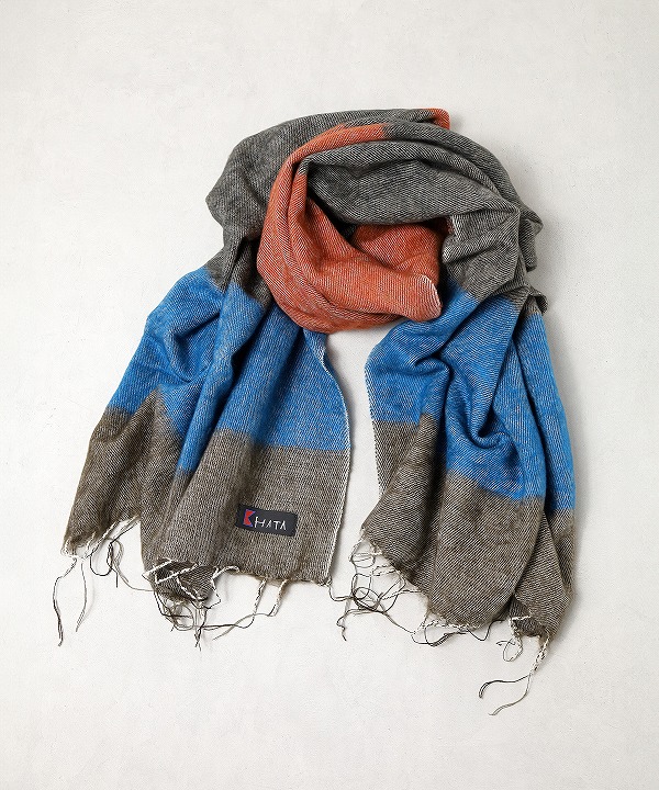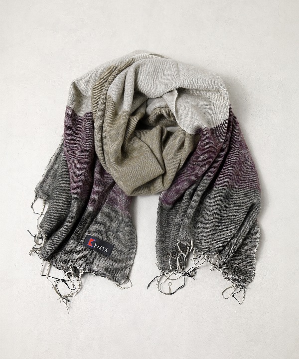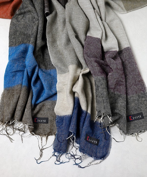 KHATAは、チベット語で“スカーフ”という意味をする単語で、ネパールの伝統的な技法で手染めや手織りされたストールは、肌触りがよく、色鮮やかな色合いも魅力となっています。