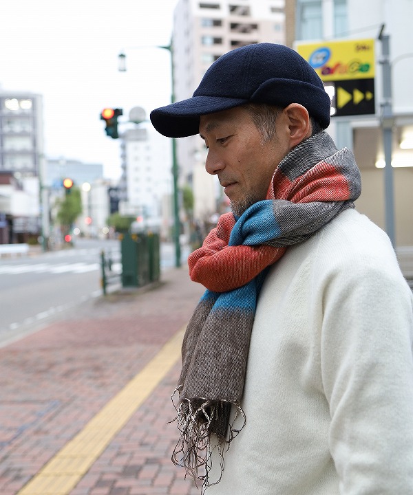 大判なのでニットやアウターの上から羽織ったり、首元に一巻きしてボリューム感を出したり、ひざ掛けにしたりと様々な表情を楽しめる1枚です。男女問わず幅広くお使い頂けますので、プレゼントにもおすすめですよ!