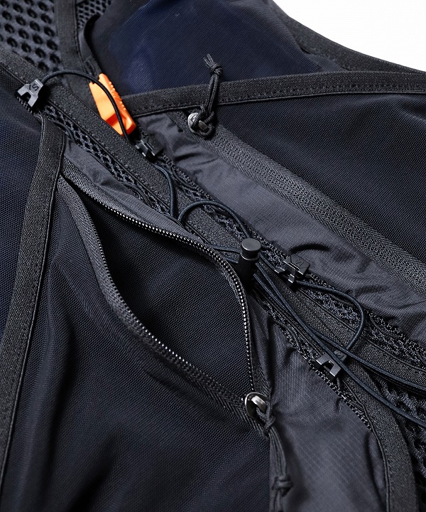 収納スペースやポケットが豊富で、動きながらでも必要なアイテムを必要なときにさっと取り出せます。適所にリフレクターも配置しています。