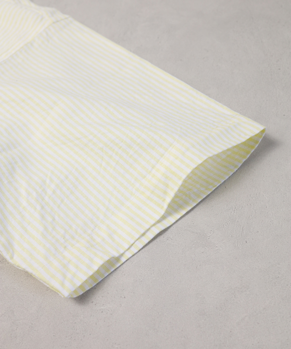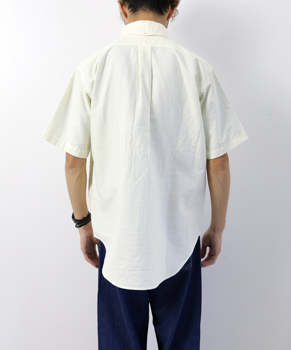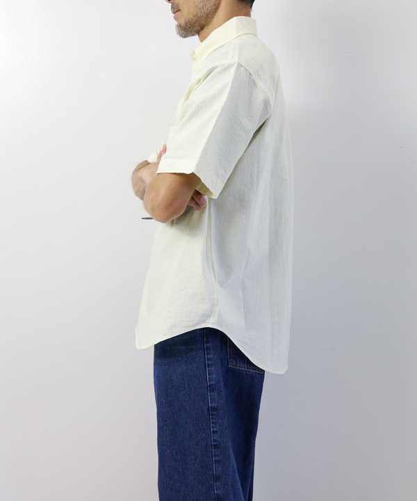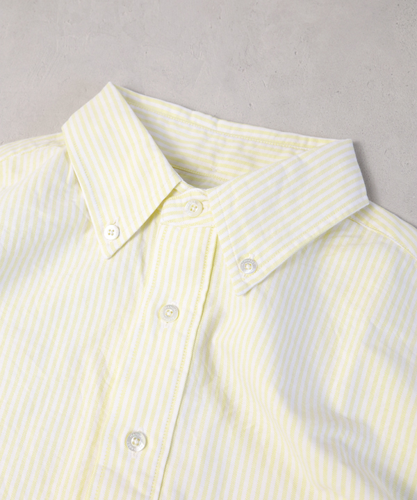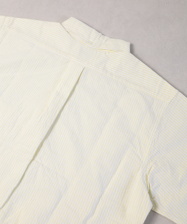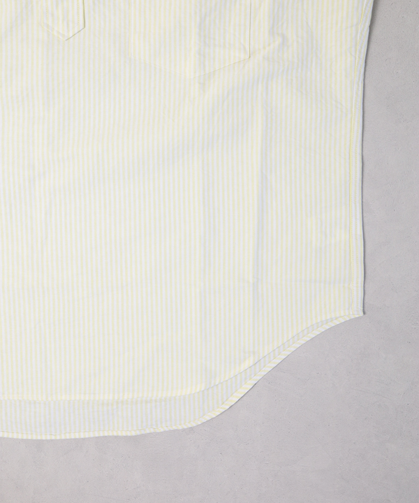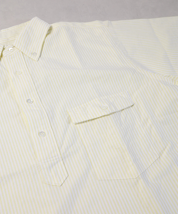 パターンは身巾にゆとりを持たせたクラシックなスタイルのプルオーバーシャツで、ボタンダウンですが硬くなり過ぎない印象に仕上げ、夏場のリラックスしたスタイルにはまる一枚に仕上げています。