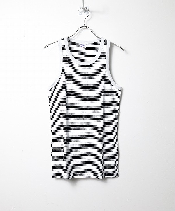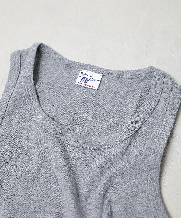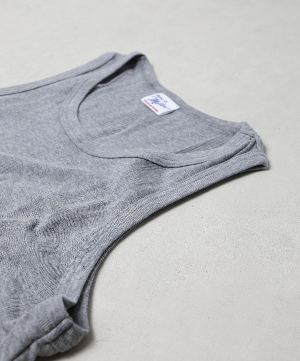 ミラーのタンクトップです。コットン100%を使用しパネルリブと呼ばれる編みは柔らかく優れた伸縮性で心地の良いフィット感が魅力です。インナーとして何枚あっても良い使えるアイテムです。