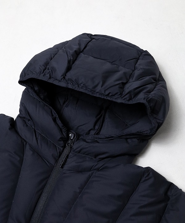 ダウンの水濡れを防ぐことで、ふわふわとしたロフト感と保温性をしっかりとキープします。フードは風の侵入を抑えるコンパクトフィット仕様。ダウンパックを使用しない2層構造により、すっきりとしたシルエットに仕上がっており、防寒アウターとしてはもちろん、インナーダウンとしても活躍します。