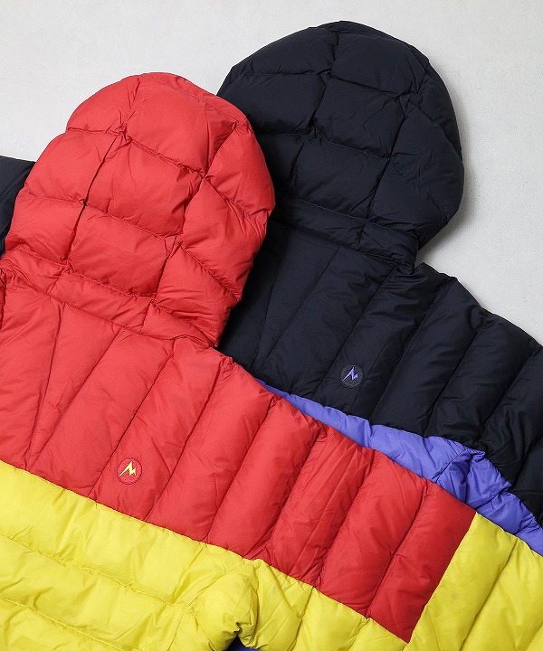 Marmotのアーカイブ資料をもとにセレクトされたカラーリングで、クラシックなムードを演出。携行に便利なスタッフサック付きで、アウトドアからタウンユースまで幅広く使える一着です。