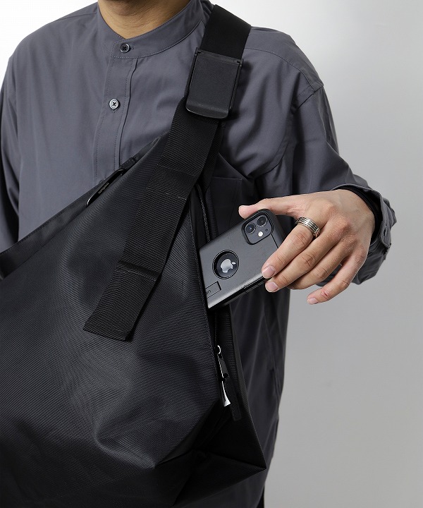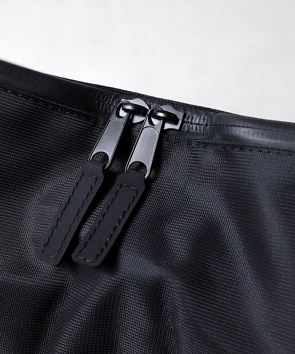 素材にはタフな撥水ナイロンを採用し、止水ジップを施すことで急な悪天候にも対応できます。