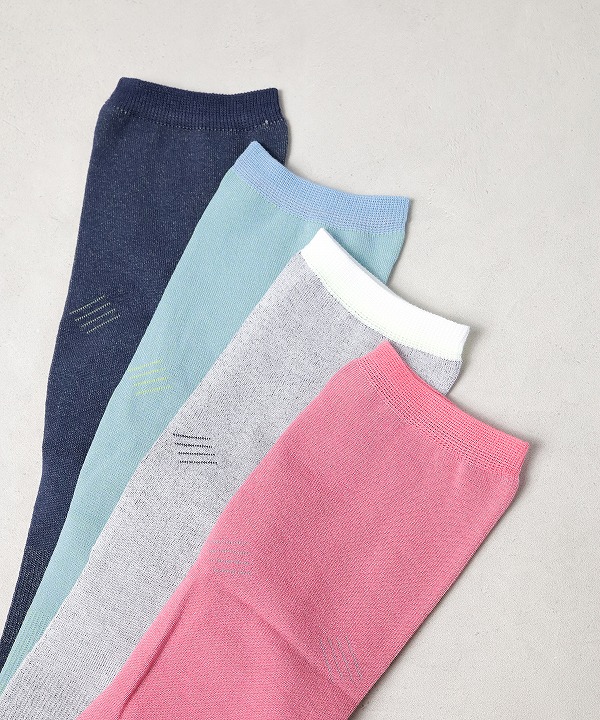 表と裏を異なる配色に仕上げ、気分やコーディネートによってリバーシブルで着用できるソックスです。
