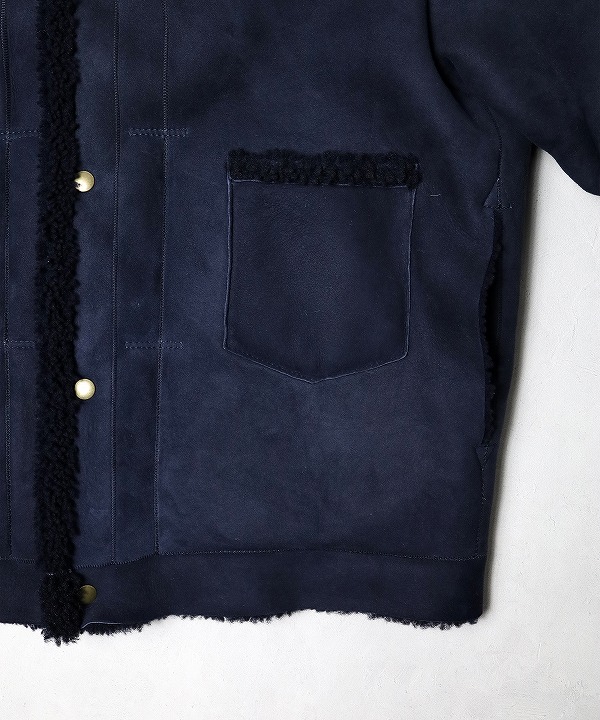 世界中から愛される永世定番のデニムジャケットをオマージュした「テオ」は、食品産業の副産物である厳選されたメリノシープスキンを使用したショートレングスのムートンジャケットです。