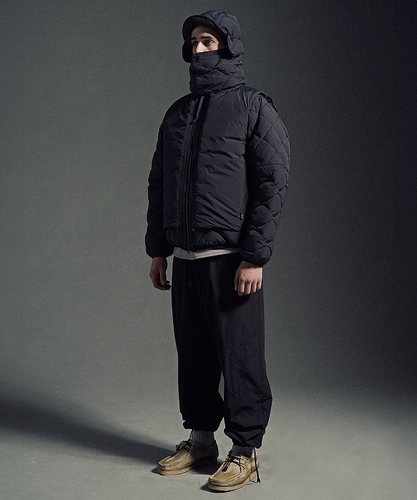 TAIONの定番「スターターキット」をベースに、ダウンジャケット、ダウンベスト、ネックウォーマー、ダウンキャップの4アイテムが、まるでパズルのように一つに融合。