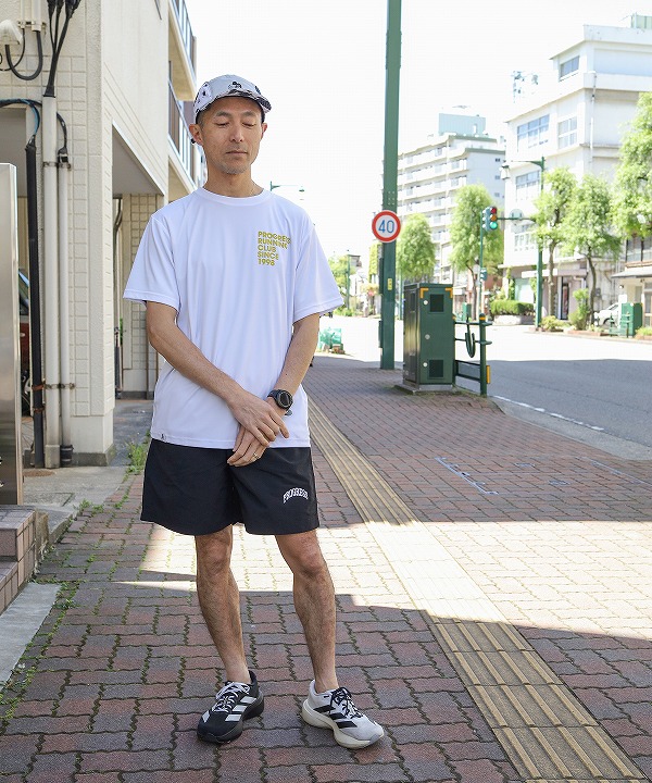 一般的なランニングウエアと比べゆったりとしたファッション性を感じさせるサイジングが特徴。